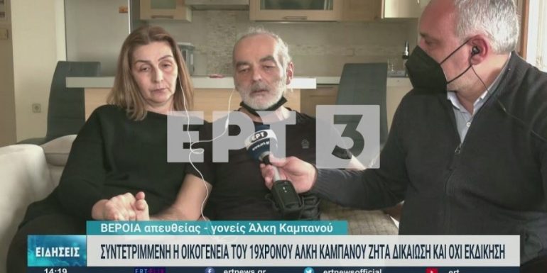 Συγκλονίζουν οι γονείς του 19χρονου Άλκη, οι οποίοι με αξιοθαύμαστη αξιοπρέπεια και μεγαλείο ψυχής, μίλησαν αποκλειστικά στην ΕΡΤ3, λίγες ημέρες μετά την εν ψυχρώ δολοφονία του γιου τους, Άλκη Καμπανού.