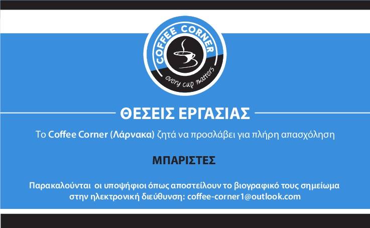 Το Coffee Corner (Λάρνακα) ζητά να προσλάβει για πλήρη απασχόληση:
