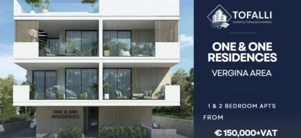 Η Tofalli Developers παρουσιάζει νέο της έργο ONE & ONE Residences στην περιοχή Βεργίνας
