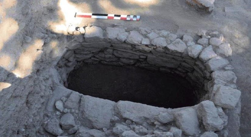 Οι τοίχοι είναι κατασκευασμένοι από ακανόνιστους ασβεστόλιθους, επενδυμένους με κονίαμα. Αυτό το στρώμα της Κλασικής περιόδου, το οποίο απέδωσε πλούσιο, αν και αποσπασματικό, κεραμικό σύνολο (με εισηγμένα αγγεία από τη Φοινίκη, την Ανατολική Ελλάδα και την Αττική) διακόπτεται στο βορειοδυτικό τμήμα της τομής από μια ωοειδούς σχήματος κατασκευή της Ρωμαϊκής περιόδου (εικ. 1). Αυτή η κατασκευή, η οποία ανασκάφηκε μέχρι 2,59 μέτρα πάνω από την επιφάνεια της θάλασσας (χωρίς να έχουμε φτάσει τον πυθμένα της), πρέπει να ήταν πηγάδι. Το σχήμα της και άλλα χαρακτηριστικά της δείχνουν ότι είχε σχεδιαστεί έτσι ώστε να συγκρατεί έναν μηχανισμό άντλησης νερού. Μπορεί να χρονολογηθεί στον 2ο-3ο αιώνα μ.Χ.