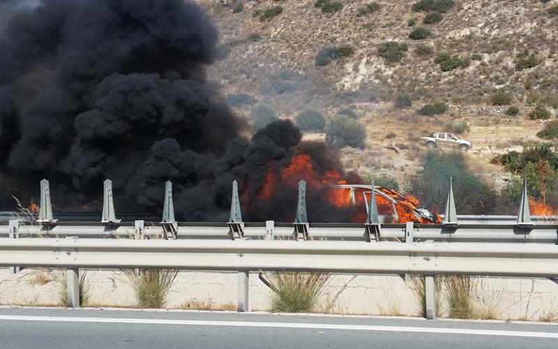 Αυτοκίνητο άρπαξε φωτιά στον αυτοκινητόδρομο Λευκωσίας- Λεμεσού έξω από τη Χοιροκοιτία (εικόνες)