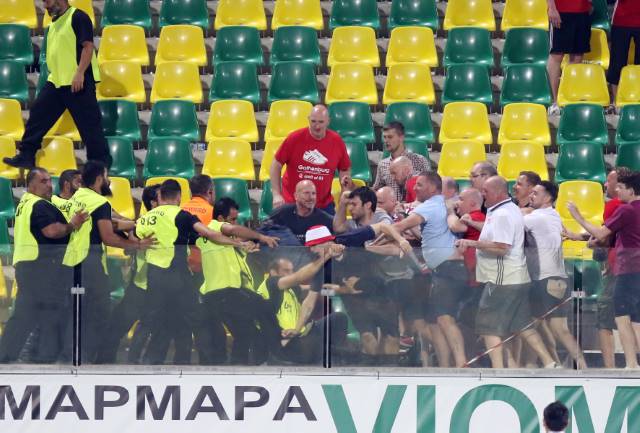 Επιτηρητές που είχαν την ευθύνη της αναμέτρησης προσπάθησαν να τους απωθήσουν με αποτέλεσμα να γίνουν μάχες σώμα με σώμα και χρειάστηκε η επέμβαση της ΜΜΑΔ, η οποία έκανε χρήση νερού για να απωθήσει τους μεθυσμένους στην πλειονότητα τους Σκοτσέζους.