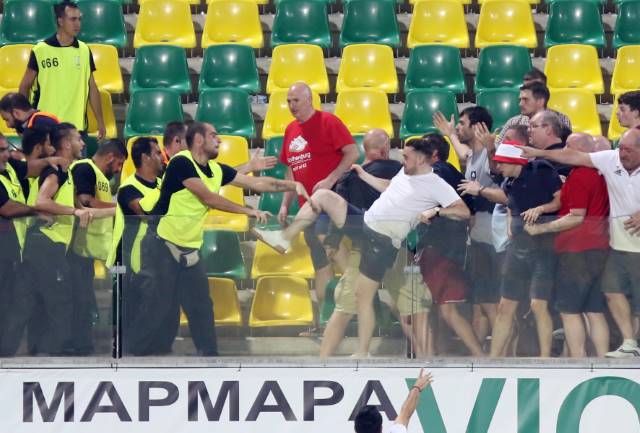Επιτηρητές που είχαν την ευθύνη της αναμέτρησης προσπάθησαν να τους απωθήσουν με αποτέλεσμα να γίνουν μάχες σώμα με σώμα και χρειάστηκε η επέμβαση της ΜΜΑΔ, η οποία έκανε χρήση νερού για να απωθήσει τους μεθυσμένους στην πλειονότητα τους Σκοτσέζους.