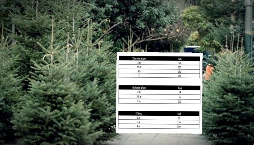Οι τιμές πώλησης των δέντρων ποικίλουν ανάλογα με το είδος και το ύψος.