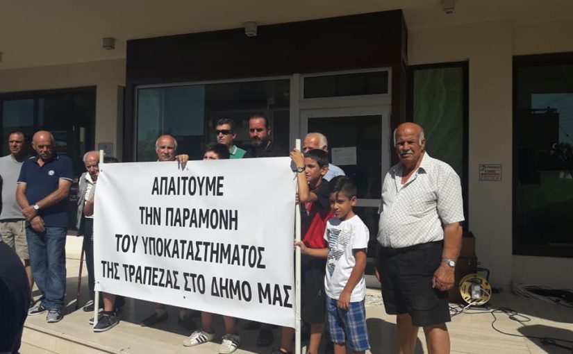 “Απαιτούμε την παραμονή του υποκαταστήματος της τράπεζας στο Δήμο μας”.