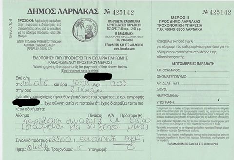 Αγαπητές κυρίες και κύριοι του Δήμος Λάρνακας / Larnaca MunicipalityLarnaka Municipality – Δήμος Λάρνακας, οκ να το πληρώσουμε το πιλλιεττούι μας με το 25ευρο εφόσον εκάμαμεν την παρανομία δεν λέω, και έχετε και δίκιο (πέρκι κλείσετε καμιά λακκούβα μες τους δρόμους που γίναν σαν τις off road διαδρομές του ρόθμανς σάιπρου ράλλι λυθροδόντας 😉 ) , αλλά πείτε μου σας παρακαλώ το εξής, επειδή δεν είναι η πρώτη φορά που περνάτε και μας γράφετε όλους μαζί τους αγαπητούς γειτόνους της τρελλοπολυκατοικίας μας στην σειρά (ξέρουμε ο ένας τα αυτοκίνητα του άλλου, μάθαμε να τα αναγνωρίζουμε από τα πράσινα χαρτούθκια που πεταλλινίζουν στον παρμπρίζ): στις περισσότερες μεγαλουπόλεις (λέμε τώρα) που βρίσκονται σε πολιτισμένες μπανανίες (hint hint) υπάρχει πρόνοια για τους γέριμους τους κάτοικους του αστικού κέντρου σαν εμάς που μένουμε σε κεντρικές πολυκατοικίες του κέντρου που δεν έχουν χώρο στάθμευσης ή πιλοτή που λένε και στην μαμά πατρίδα, να πληρώνουμε με τον μήνα ή με το έτος ένα τέλος στον δήμο, να παίρνουμε αυτοκολλητούδιν ΚΑΤΟΙΚΟΣ ΚΕΝΤΡΟΥ με κάποια στοιχεία του αυτοκινήτου πάνω, να τα κοτσάρουμε στο τζιάμι του αυτοκινήτου μας μόνιμα και να μην μας γράφουν οι αγαπητοί τροχονόμοι κάθε φορά που κάμνουμε το έγκλημα να παρκάρουμε σπίτι μας.