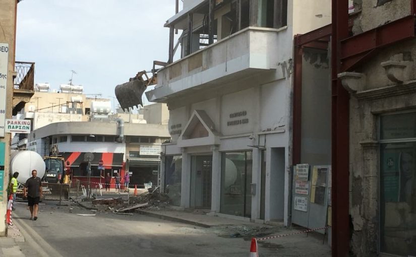 Οι εργασίες διενεργούνται στο σημείο όπου βρίσκεται η οδοντιατρική κλινική Κυριακίδη, η οποία φεύγει από το χώρο.