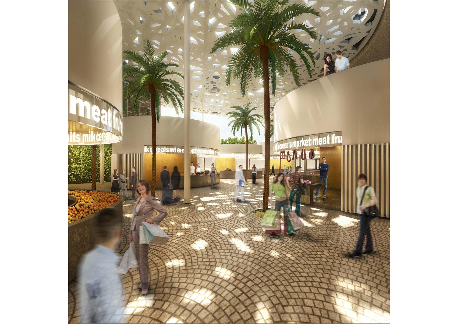 Η ανάπτυξη θα αποτελείται στο ισόγειο από Δημοτική Αγορά, στην οποία θα στεγάζονται 20 καταστήματα πώλησης παραδοσιακών προϊόντων και φθαρτών, χώρος τοπιοτεχνημένος για οργάνωση της λαϊκής υπαίθριας αγοράς και Κέντρο Πληροφόρησης. Στον όροφο, θα στεγάζονται 4 υποστατικά αναψυχής και εκθεσιακός χώρο. Στην ταράτσα θα δημιουργηθούν καθιστικά και χώρος πρασίνου (garden roof).
