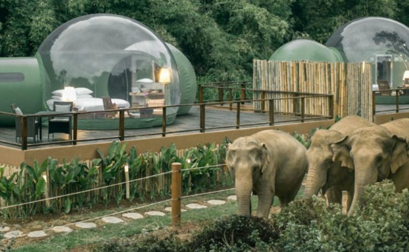 Την ανερχόμενη τάση του glamping πηγαίνει ένα βήμα πιο πέρα το «Anantara Resort» στο Χρυσό Τρίγωνο της Ταϊλάνδης, ένα camp σχεδιασμένο ως καταφύγιο περίθαλψης και φροντίδας ελεφάντων που διασώζονται από ζωολογικούς κήπους, τσίρκα και άλλες συνθήκες εκμετάλλευσης. Τοποθετημένο σε ένα λόφο που επιβλέπει το σημείο συνάντησης της Ταϊλάνδης, του Λάος και της Μιανμάρ, το «Anantara» εγκαινίασε πριν από μερικούς μήνες τα «Jungle Bubbles», μια σειρά από διάφανα, σφαιρικά γυάλινα καταλύματα 22 τ.μ., με υπνοδωμάτιο, σαλόνι και κλειστό μπάνιο, σε πλήρη επαφή με τη φύση, και κυρίως τους ελέφαντες που περιφέρονται ανέμελοι στην έκταση.