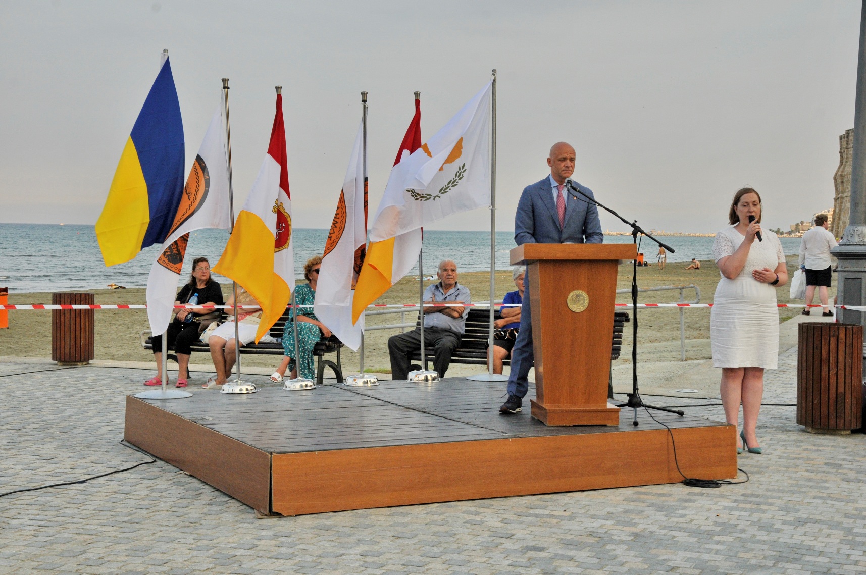 Παρόντες στην Τελετή ήταν ο Πρέσβης της Ουκρανίας κ. Borys Humeniuk και Μέλη της Διπλωματικής Αποστολής στην Κύπρο, Μελή του Δημοτικού Συμβουλίου Λάρνακας, καθώς και Αρχές και Σύνολα της πόλης.