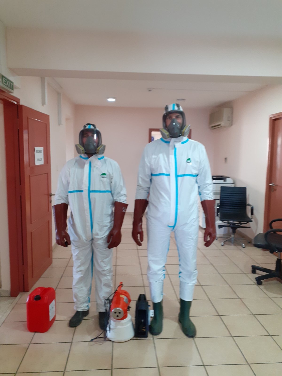 Επίσης, το συνεργείο της Υπηρεσίας προβαίνει σε έκτακτες απολυμάνσεις σε Δημοτικά Κτίρια σε περίπτωση εμφάνισης κρουσμάτων του ιού μεταξύ του προσωπικού του Δήμου.