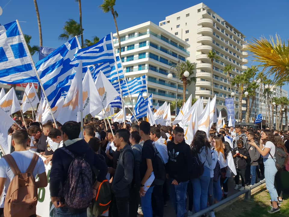 Χιλιάδες μαθητές διαμαρτυρήθηκαν ειρηνικά σήμερα, ενάντια στη παράνομη ανακήρυξη του ψευδοκράτους. Η αντικατοχική πορεία έγινε στο παραλιακό μέτωπο της Λάρνακας, με αποκορύφωμα αντικατοχική εκδήλωση στην εξέδρα των Φοινικούδων.