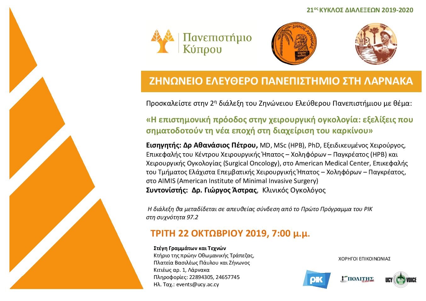 Διάλεξη με θέμα: «Η επιστημονική πρόοδος στη χειρουργική ογκολογία: εξελίξεις, που σηματοδοτούν τη νέα εποχή στη διαχείριση του καρκίνου» στη Λάρνακα