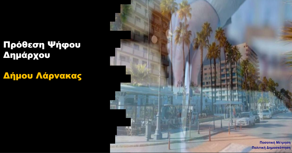 Στην πρόθεση ψήφου Δημάρχου για τον Δήμο Λάρνακας, ο νυν Δήμαρχος Ανδρέας Βύρας λαμβάνει ποσοστό 61% και ακολουθούν οι Μιχάλης Πεκκρής και Σωτήρης Ιωάννου με ποσοστά 10% ο καθένας.