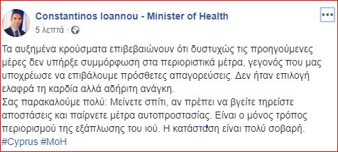 Δραματική έκκληση του Υπουργού Υγείας μετά την ανακοίνωση των νέων κρουσμάτων.
