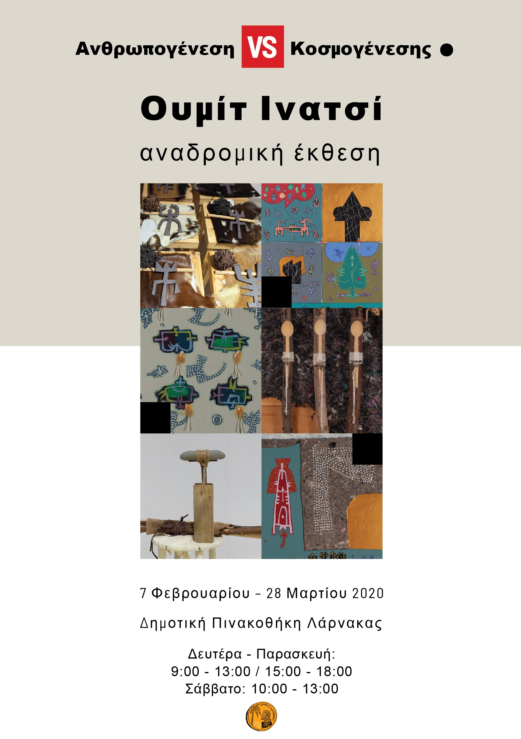 Τα εγκαίνια της αναδρομικής έκθεσης του εικαστικού Ουμίτ Ινατσί «Ανθρωπογένεση έναντι Κοσμογένεσης» θα πραγματοποιηθούν την Παρασκευή 7 Φεβρουαρίου 2020 στις 8:00 μ. μ. στη Δημοτική Πινακοθήκη Λάρνακας.
