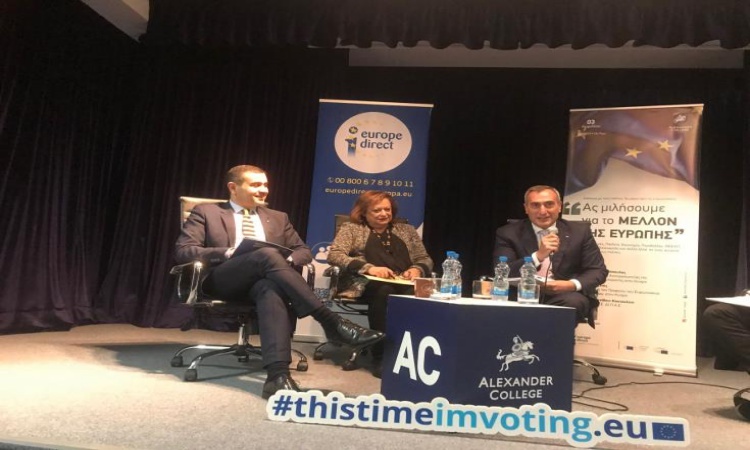 Εκδήλωση με τίτλο «Διάλογος με τους Πολίτες: 54 ημέρες πριν τις ευρωεκλογές» – ευρωεκλογές, οικονομία, παιδεία, περιβάλλον, Brexit και εργασιακά δικαιώματα, διοργάνωσαν χθες βράδυ στη Λάρνακα το Κέντρο Πληροφόρησης Europe Direct του Δήμου Λάρνακας και το Alexander College.