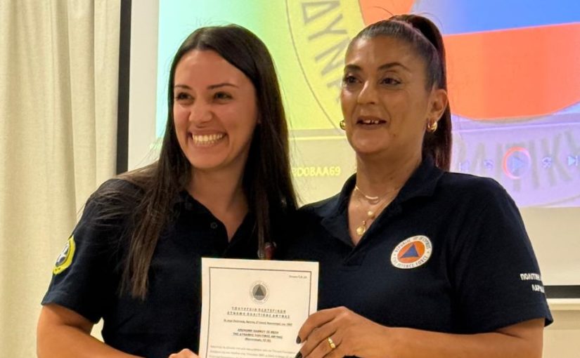 Με ιδιαίτερη χαρά ο Δήμαρχος παρευρέθηκε στην εκδήλωση της Πολιτικής Άμυνας για την απονομή των πιστοποιητικών του πρώτου κύκλου εκπαίδευσης σε νέες της πόλης μας.