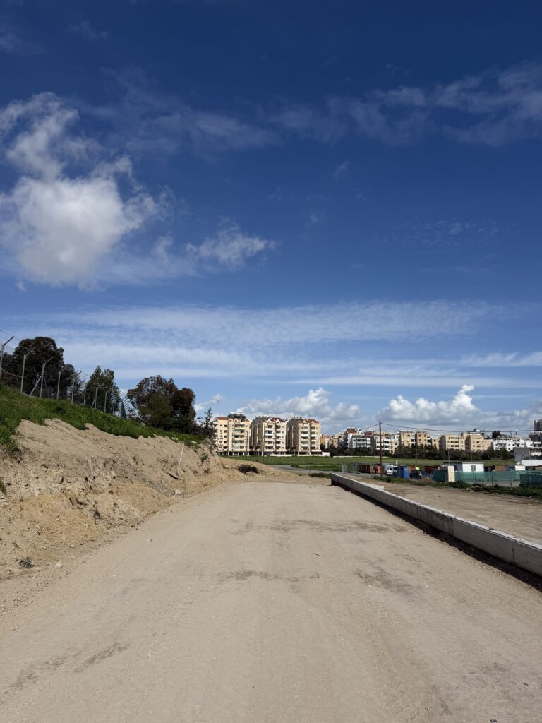Μέχρι σήμερα έχουν ολοκληρωθεί οι προκαταρκτικές εργασίες, οι οποίες περιλάμβαναν τη γενική ισοπέδωση και τον καθαρισμό του οικοπέδου, καθώς και επιφανειακές εκσκαφές για την επίτευξη των απαιτούμενων υψομέτρων. Ακολούθησε η κατασκευή των τοίχων για τον υπερυψωμένο δρόμο και τα πρανή, καθώς και η επιχωμάτωση του δρόμου.