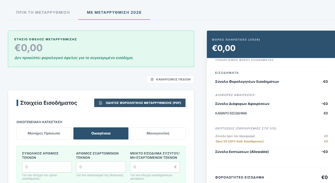 - του φορολογικού οφέλους (της διαφοράς) που προκύπτει από τη Φορολογική Μεταρρύθμιση 2026.