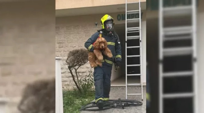 Η εικόνα ανθρωπιάς που ξεχώρισε από την πυρκαγιά στη Λάρνακα: Πυροσβέστης σώζει το σκυλάκι οικογένειας από το φλεγόμενο διαμέρισμα