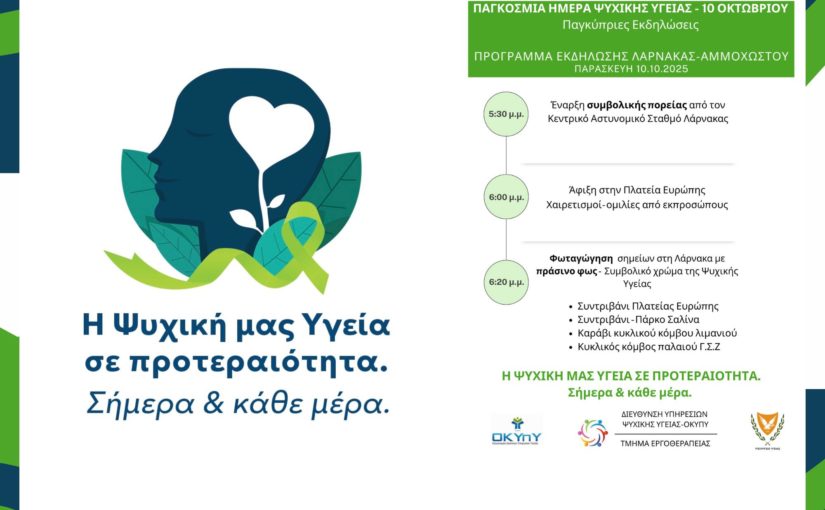 Η Λάρνακα τιμά την Παγκόσμια Ημέρα Ψυχικής Υγείας την Παρασκευή 10 Οκτωβρίου