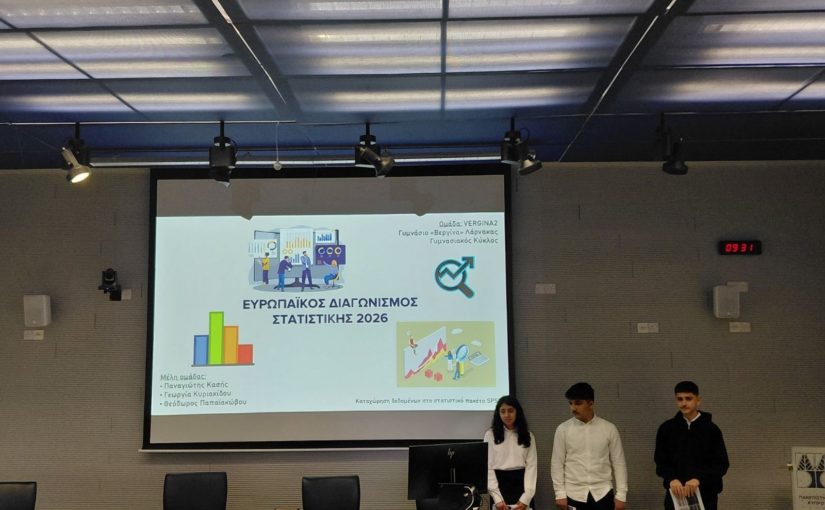 Η ομάδα VERGINA2, που αποτελείται από τους μαθητές/τριες του Γ1 Κασή Παναγιώτη, Κυριακίδου Γεώργια και Παπαϊακώβου Θεόδωρο, προκρίθηκε στην 2η φάση του Διαγωνισμού Στατιστικής, στις 10 καλύτερες ομάδες παγκύπρια.