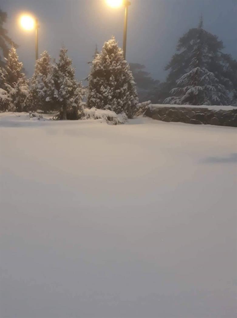 Βαριά χιονόπτωση σημειώνεται στην περιοχή Τροόδους και Πεδουλά, ενώ παραμένει κατάλευκο το τοπίο από τα ξημερώματα.