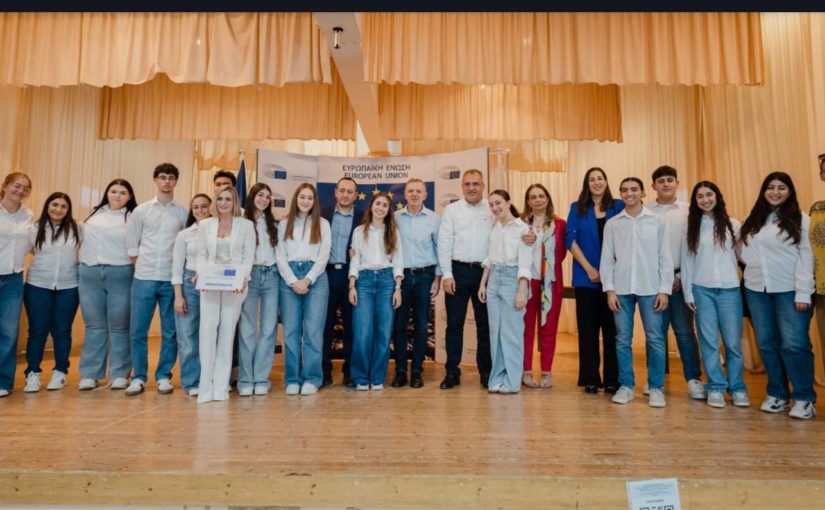 Τo Γραφείο του Ευρωπαϊκού Κοινοβουλίου στην Κύπρο, σε συνεργασία με το Υπουργείο Παιδείας, Αθλητισμού και Νεολαίας, διοργάνωσαν την τελετή βράβευσης δόκιμων και ανώτερων πρεσβευτών, που συμμετείχαν στο Πρόγραμμα Σχολείο-Πρεσβευτής του Ευρωπαϊκού Κοινοβουλίου 2024-2025, καθώς και των μαθητών/τριών, του Λυκείου Αγίου Γεωργίου Λάρνακας, που διακρίθηκαν στον Παγκύπριο Διαγωνισμό Παραγωγής Σύντομου Βίντεο 2024-2025 με θέμα: “Η Κύπρος στην ΕΕ: οφέλη και προοπτικές μέσα από την 20χρονη πορεία της”.