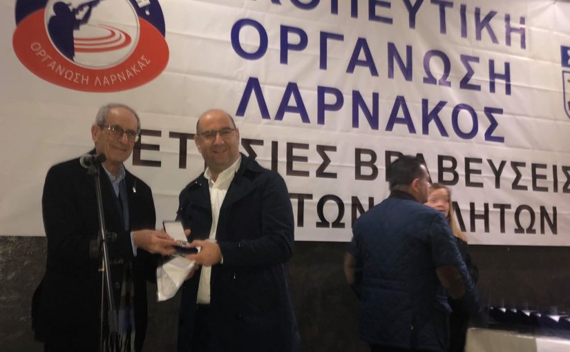 Με ασημένιο μετάλλιο βραβεύτηκε ο Δήμαρχο Λάρνακας κ. Ανδρέας Βύρας από τη Σκοπευτική Επιτροπή Λάρνακας, κατά την τελετή των Ετησίων Βραβεύσεων 2018, που πραγματοποιήθηκαν την 1η Φεβρουαρίου 2019.