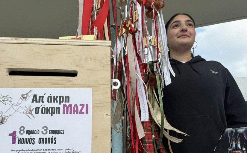 Η Περιβαλλοντική Επιτροπή αποφάσισε να διαθέσει τα καθαρά έσοδα της δράσης στη φιλανθρωπική πρωτοβουλία «Απ’ Άκρη σ’ Άκρη, Μαζί», η οποία συνενώνει οκτώ σχολεία από τρεις επαρχίες με κοινό στόχο τη στήριξη του ιδρύματος «Μικροί Ήρωες».