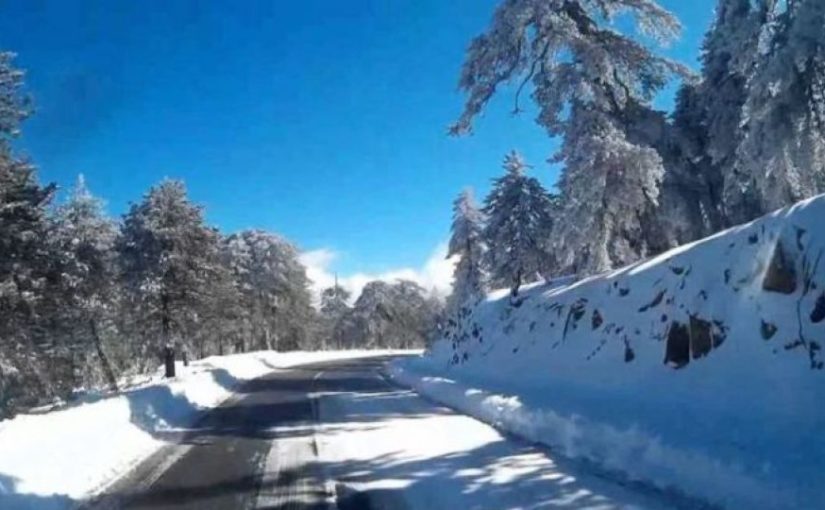 Καλυμμένες από χιόνι είναι οι κορυφές του Τροόδους, με το θέαμα να είναι μοναδικό.