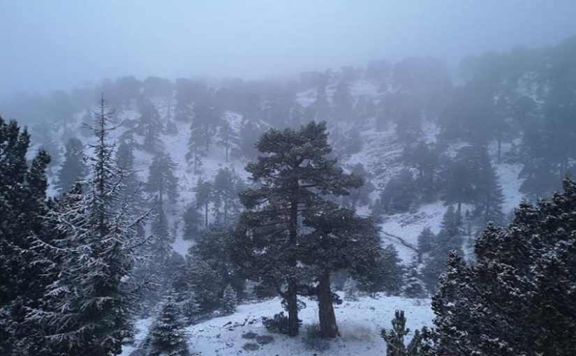 Troodos Snow 06:45 27/12/2018. Snow depth 4 cm. Current temperature -1.5 degrees Celsius. http://www.kitasweather.com/pyknes-chionoptoseis-sta-oreina-apopse/