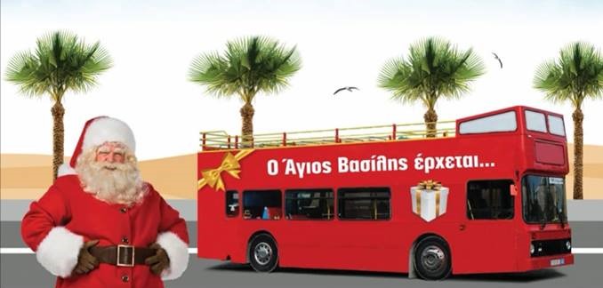 Το ειδικά διαμορφωμένο Λεωφορείο με επιβάτες τον Άη Βασίλη, τον Δήμαρχο και τα μέλη του Διοικητικού Συμβουλίου Λάρνακας θα μοιράσουν πολλά δώρα, γλυκά και χαμόγελα σε όλα τα παιδιά το Σάββατο 28 Δεκεμβρίου 2019.