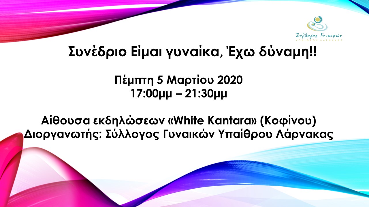 Ο Σύλλογος Γυναικών Υπαίθρου Λάρνακας με την ευκαιρία της Διεθνούς Ημέρα της Γυναίκας, διοργανώνει συνέδριο με τίτλο «Είμαι Γυναίκα, Έχω δύναμη»