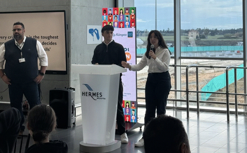 Ομάδα μαθητών του Λυκείου Αραδίππου στη δράση «Πρόληψη και αντιμετώπιση των πλημμυρών», στο Αεροδρόμιο Λάρνακας (φώτο)