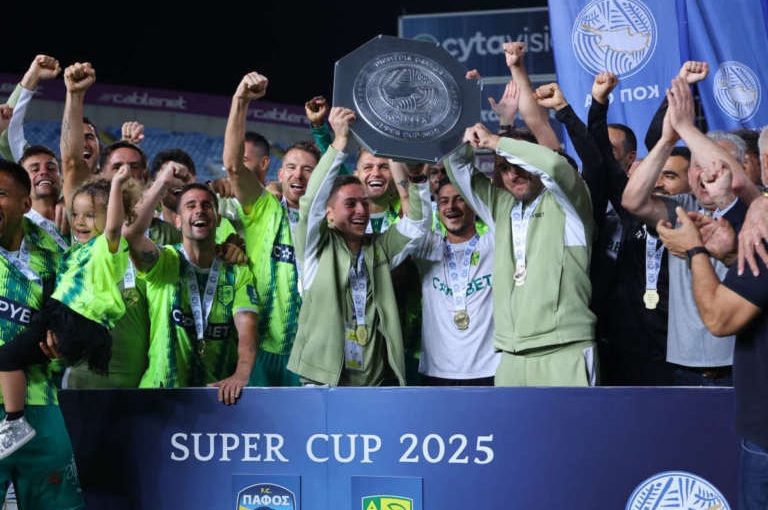 Το 3ο Σούπερ Καπ της ιστορίας της πανηγυρίζει η ΑΕΚ, η οποία κατέκτησε το τρόπαιο ύστερα από ένα συγκλονιστικό τελικό απέναντι στην Πάφος FC στο ΓΣΠ. Οι κιτρινοπράσινοι επικράτησαν με 5-4 στα πέναλτι, μετά το ισόπαλο 1-1 της κανονικής διάρκειας και της παράτασης, και πρόσθεσαν άλλο ένα τρόπαιο στη συλλογή τους — μόλις λίγους μήνες μετά τον περσινό θρίαμβο στο Κύπελλο Κύπρου απέναντι στην ίδια αντίπαλο.