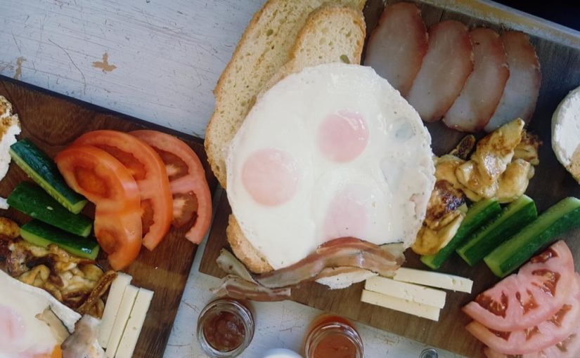 Συνοδοί σε αυτή την γευστική πανδαισία οι ζεστές φέτες γαλλικής μπαγκέτας με αρωματισμένο βούτυρο, το φρεσκοζυμωμένο κουλούρι εμπλουτισμένο με αρωματικά βότανα και κάποιο σπιτικό κέικ που φτιάχνουν οι ίδιοι, άλλοτε γεωγραφίας, άλλοτε σοκολάτας, άλλοτε λεμονιού κ.τ.λ. σερβιρισμένα πάντα με κάποια σάλτσα. Στη συνέχεια φτάνει στο τραπέζι ένα πιάτο με δύο ολόφρεσκα τηγανιτά αυγά από τα κοτέτσια του χωριού- σερβίρονται και ως ομελέτα, επίσης πατάτες, ντομάτα και πιπεριές σωτέ, μπέικον από παραγωγούς της περιοχής και γερμανικά λουκάνικα.