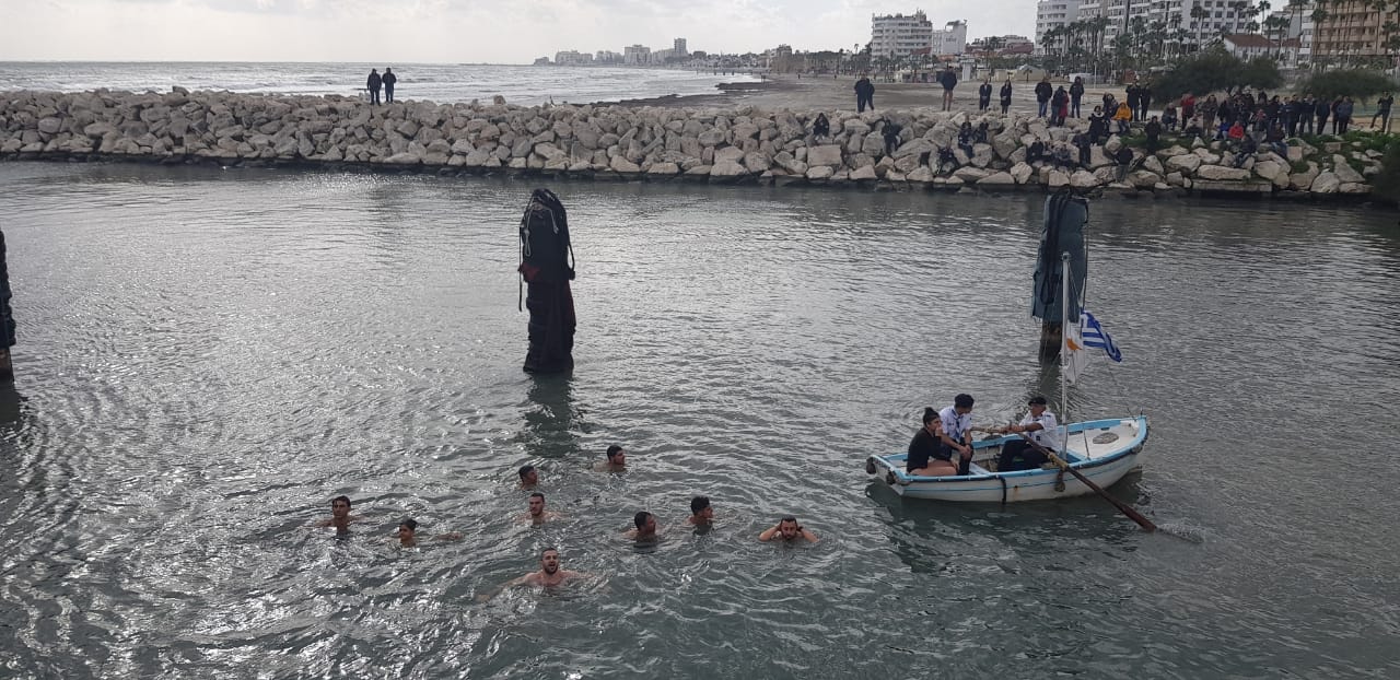 Συνολικά 11 άνδρες, δύο γυναίκες και ένα παιδί βούτηξαν στην φουρτουνιασμένη θάλασσα για να ανασύρουν τον Σταυρό που ρίχθηκε για την τελετή αγιασμού των υδάτων. Σημειώνεται ότι το παιδί και ένας από τους άνδρες ήρθαν στη Λάρνακα για να βουτήξουν και να ανασύρουν το Σταυρό, από την Πόλη Χρυσοχούς.