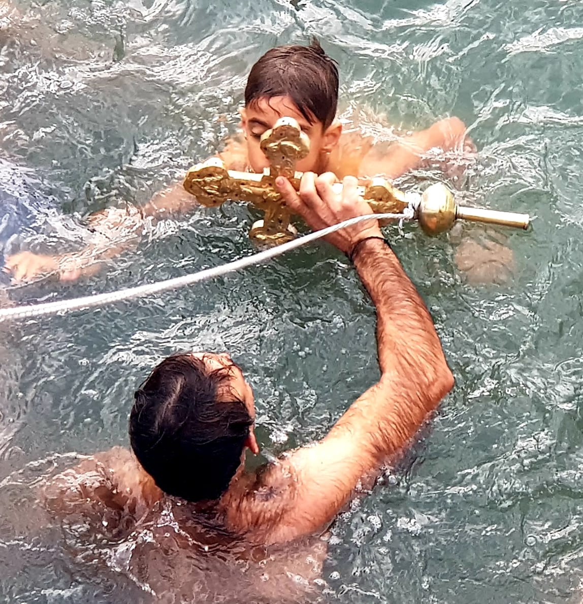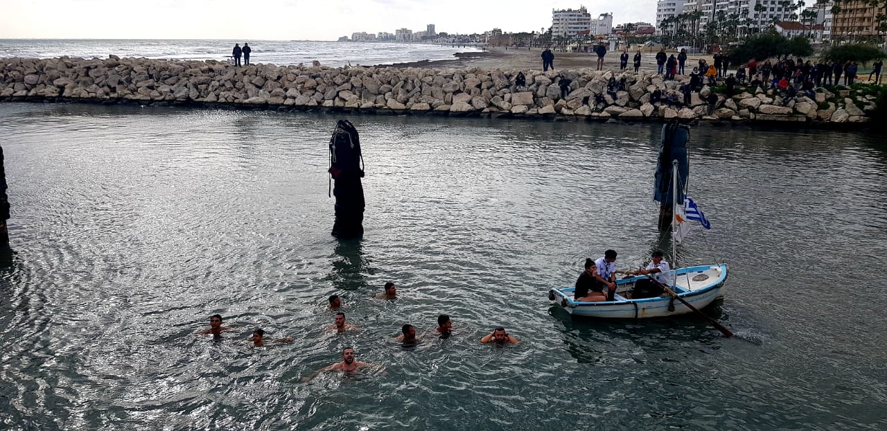 Συνολικά 11 άνδρες, δύο γυναίκες και ένα παιδί βούτηξαν στην φουρτουνιασμένη θάλασσα για να ανασύρουν τον Σταυρό που ρίχθηκε για την τελετή αγιασμού των υδάτων. Σημειώνεται ότι το παιδί και ένας από τους άνδρες ήρθαν στη Λάρνακα για να βουτήξουν και να ανασύρουν το Σταυρό, από την Πόλη Χρυσοχούς.