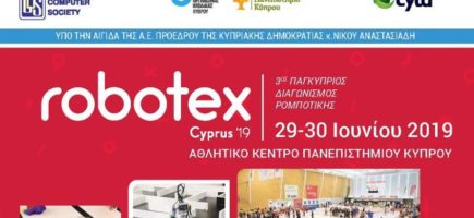 Μετά την τεράστια επιτυχία των δύο προηγούμενων διοργανώσεων, ο Κυπριακός Σύνδεσμος Πληροφορικής (Cyprus Computer Society-CCS) διοργανώνει τον 3ο Παγκύπριο Διαγωνισμό Ρομποτικής Robotex που θα γίνει στις 29 και 30 Ιουνίου, στο Αθλητικό Κέντρο του Πανεπιστημίου Κύπρου. O διαγωνισμός Robotex Cyprus 2019 τελεί υπό την αιγίδα της A.E. Προέδρου της Κυπριακής Δημοκρατίας κου Νίκου Αναστασιάδη. Με συνδιοργανωτές το Πανεπιστήμιο Κύπρου και τον Οργανισμό … Continue reading Προκήρυξη του Διαγωνισμού Ρομποτικής ROBOTEX