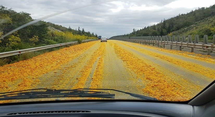 Επικίνδυνος έχει καταστεί ο αυτοκινητόδρομος Λεμεσού- Λευκωσίας παρά την έξοδος της Ακτής του Κυβερνήτη λόγω πορτοκαλιών στο οδόστρωμα.