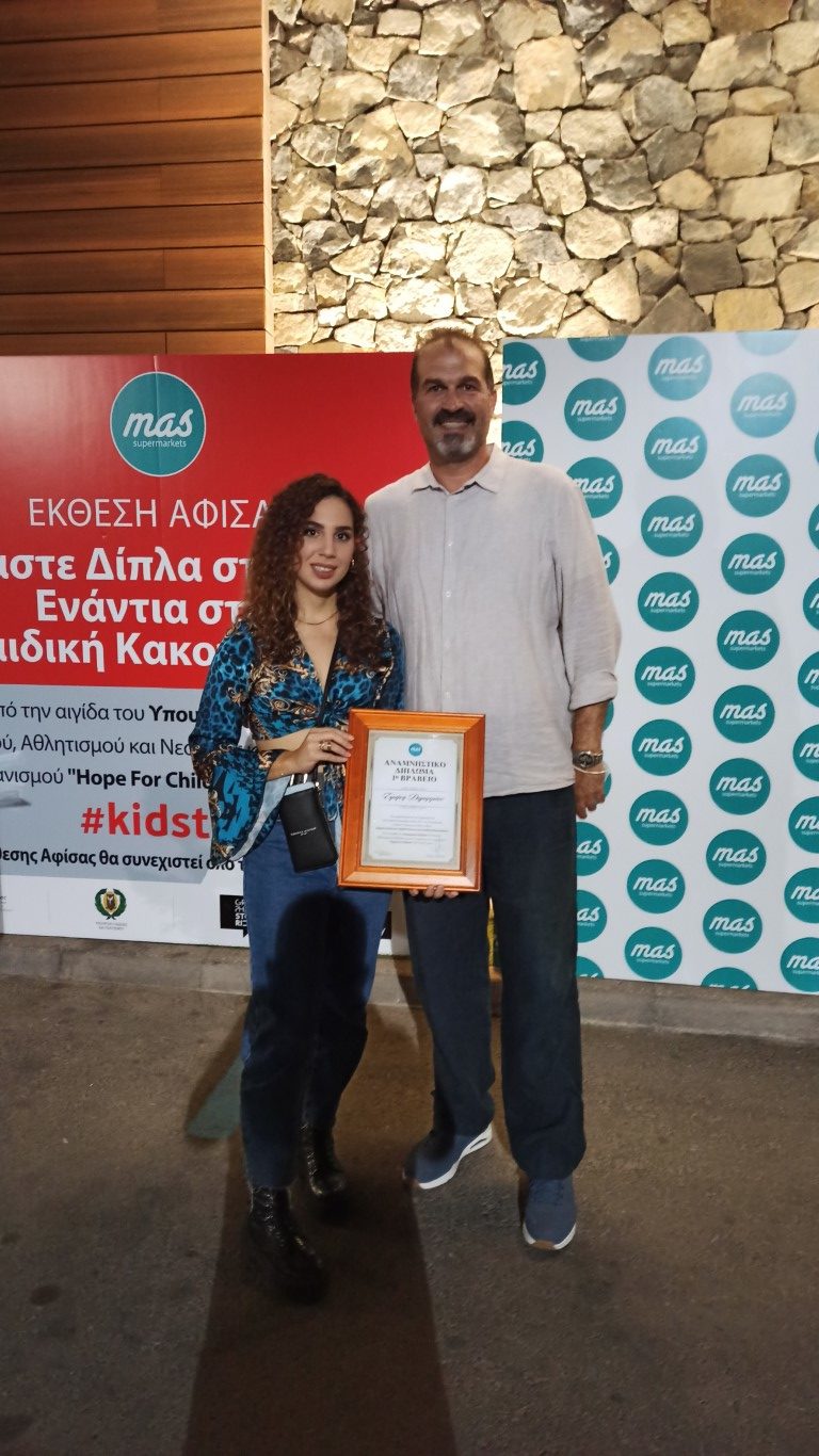 Σημαντική διάκριση για τη φοιτήτρια του Alexander College Ειρήνη Δημητρίου, η οποία μαζί με άλλους φοιτητές του κλάδου Γραφικών Τεχνών, συμμετείχε στην Εκστρατεία για δημιουργία αφίσας, των Υπεραγορών MAS, με θέμα «ΕίMASτε Δίπλα στα Παιδιά – Ενάντια στην Παιδική Κακοποίηση».