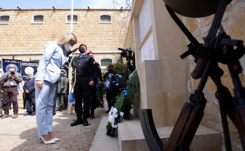 Είμαστε εδώ σήμερα, ανέφερε, για να τιμήσουμε τα παλικάρια μας, αυτούς που θυσιάστηκαν σε αυτό τον ένδοξο αγώνα για να μπορέσει στη συνέχεια η Κύπρος ν’ απολαύσει την ανεξαρτησία της.