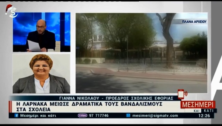 Στην εκπομπή «Μεσημέρι και Κάτι» φιλοξενήθηκε η Πρόεδρος της Σχολικής Εφορίας, Γιάννα Νικολάου, η οποία μίλησε για την εικόνα που παρουσιάζουν τα σχολεία το τελευταίο διάστημα, τα μέτρα φύλαξης που εφαρμόζονται, αλλά και τον επιτυχημένο συντονισμό με την Αστυνομία.