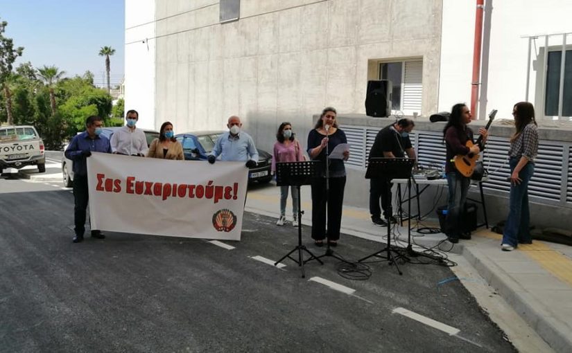 Η  εκδήλωση στο Νοσοκομείο Λάρνακας  πραγματοποιήθηκε σήμερα, Τρίτη 12 Μαΐου 2020 και  περιλάμβανε ένα ημίωρο μουσικό πρόγραμμα όπου τον χαιρετισμό απηύθυνε η Ε.Γ. του ΑΚΕΛ Λάρνακας Χρυστάλλα Αντωνίου.