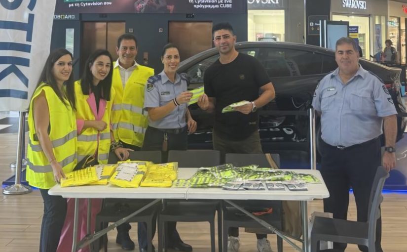 Στη Λάρνακα, μέλη της Κοινοτικής Αστυνόμευσης Λάρνακας και της ERB Ασφαλιστικής, ενημερώνουν το κοινό σχετικά με την οδική ασφάλεια και διανέμουν φωσφορούχα γιλέκα και περιβραχιόνια.