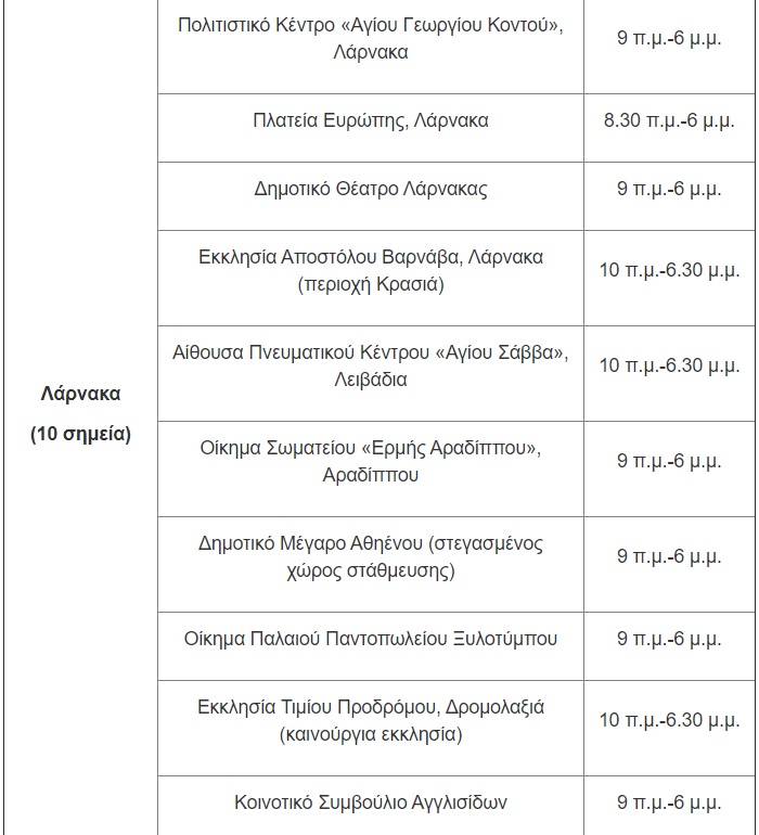 Στην πόλη και επαρχία Λάρνακας θα λειτουργήσουν δέκα σημεία δειγματοληψίας.