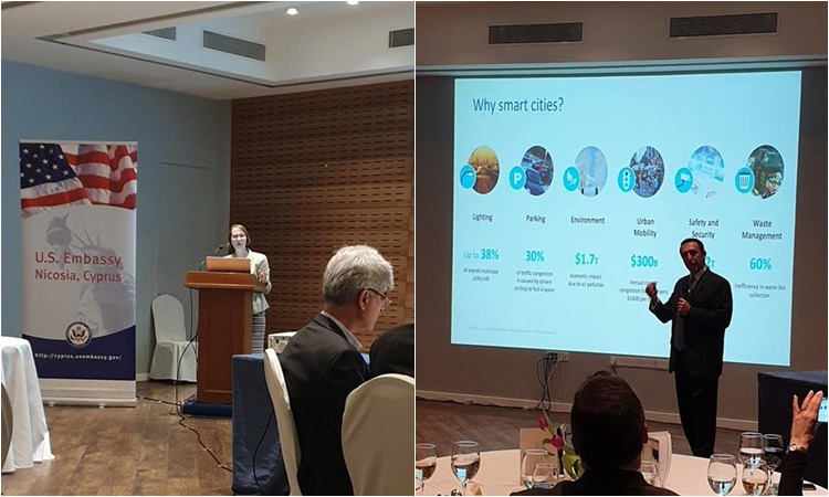 Οσον αφορά την παρουσίαση για τις Εξυπνες Πόλεις «την οποία προσφώνησε η Πρέσβης των ΗΠΑ, έγιναν παρουσιάσεις και επεξηγήθηκαν οι προοπτικές και οι τρόποι μετατροπής μιας πόλης σε «Εξυπνη Πόλη» από εκπροσώπους των εταιρειών CISCO και LOGICOM, ενώ ομιλία απηύθυνε και ο Δήμαρχος Τρικάλων, μιας πραγματικά «έξυπνης πόλης».