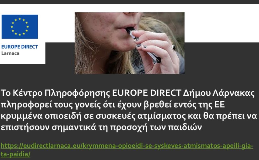 To Κέντρο Πληροφόρησης EUROPE DIRECT Δήμου Λάρνακας: Κρυμμένα οπιοειδή σε συσκευές ατμίσματος απειλή για τα παιδιά